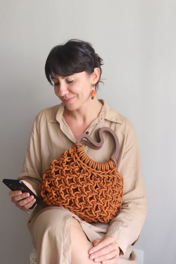 Ela tem um design único no macramê, cheio de personalidade, presença e identidade. Ver ela pronta, toda redondinha, sem pontas sobrando, é muuuito satisfatório.