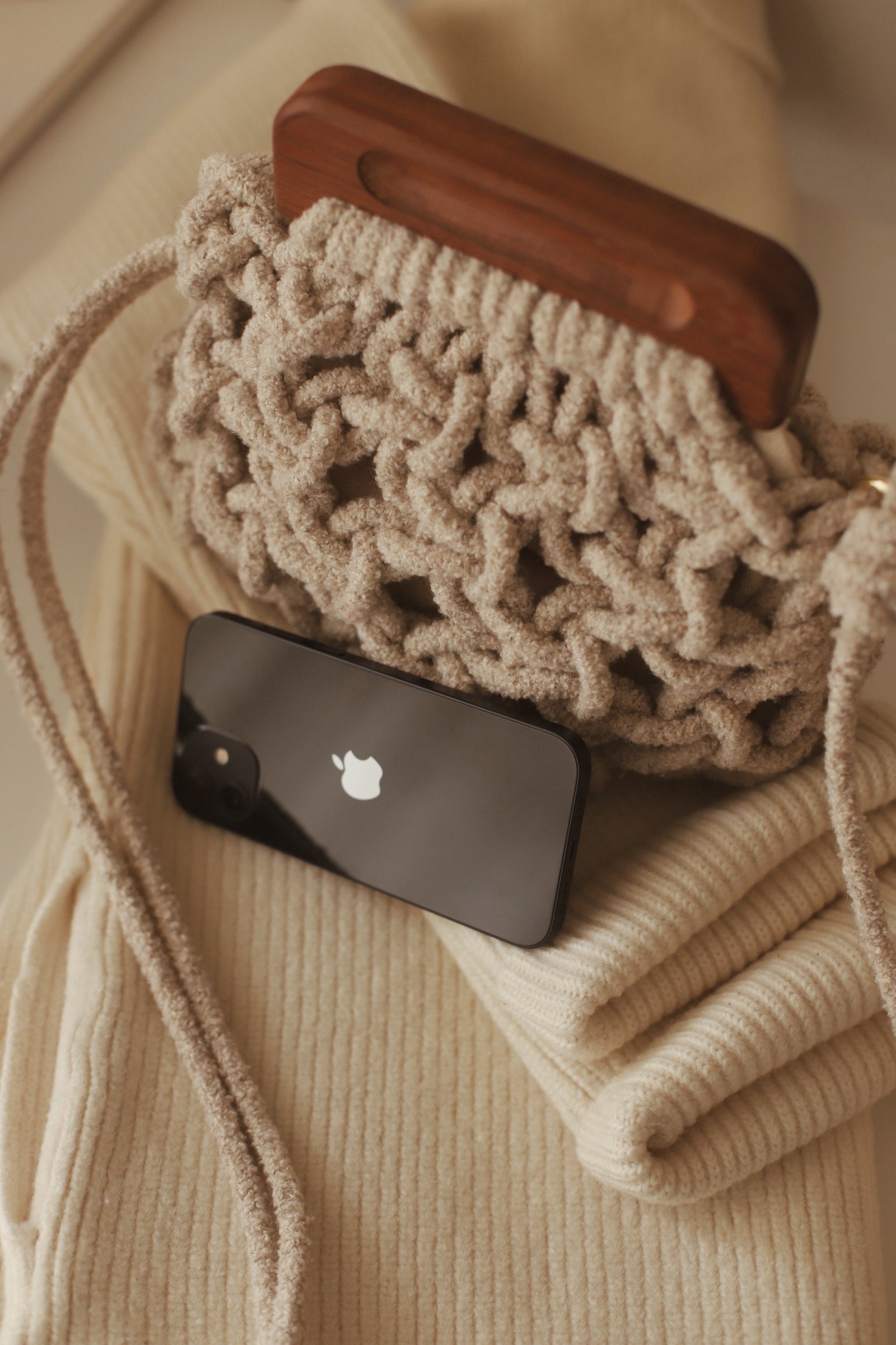 A bolsa mais queridinha com alça de madeira com imã.