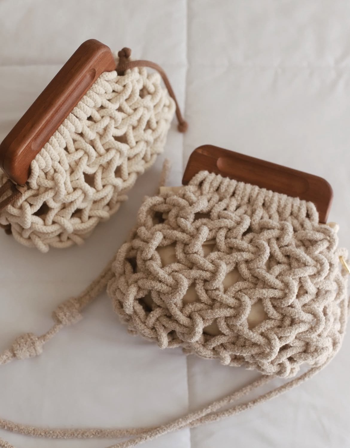 Feita em corda de algodão premium impermeabilizada ou bouclé cru ou marrom.